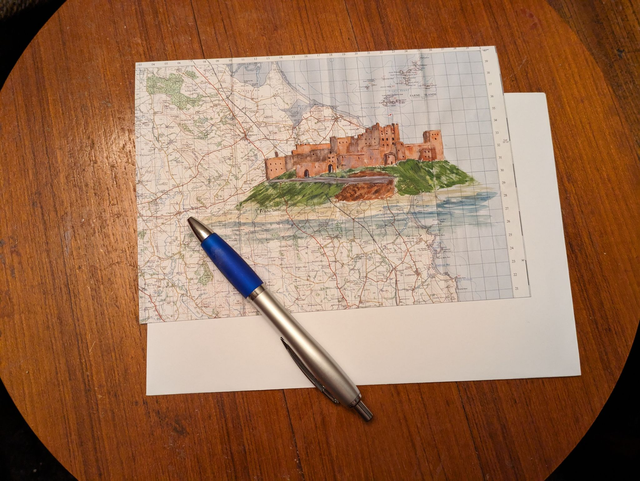 Blank greeting cards featuring a 1965 vintage map with Bamburgh Castle