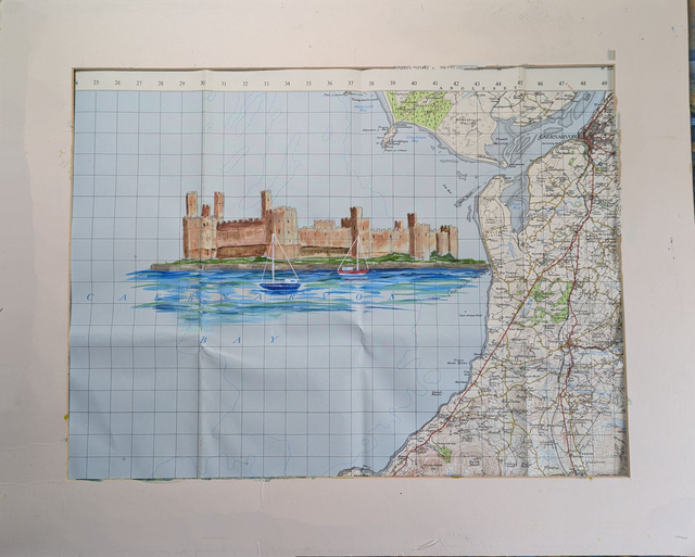 Painted on an original vintage map from 1953 the painting measures 16 x 20 inches with mount, this will be sent in a tube so without mount. UK delivery