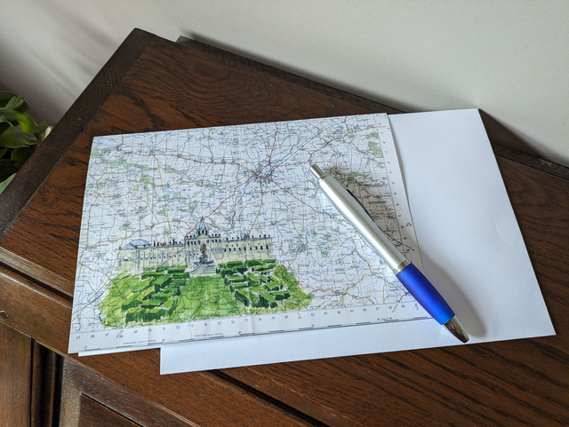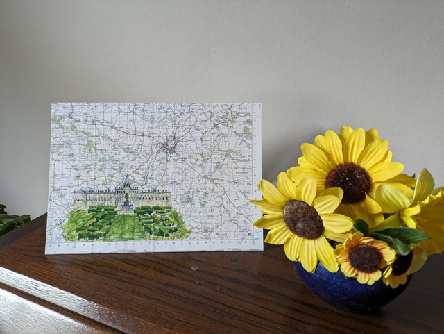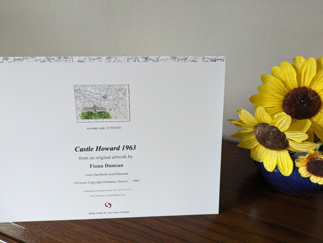 Blank greeting card featuring Castle Howard in North Yorkshire on a vintage map from 1963