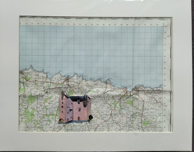 Fordyce Castle in the historic village of Fordyce, Aberdeenshire painted on an original 1959 vintage Ordnance Survey map. 16 x 20 inches with mount, this will be sent in a tube so without mount. UK delivery only