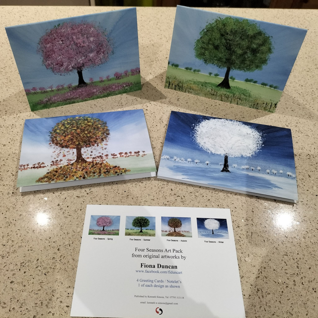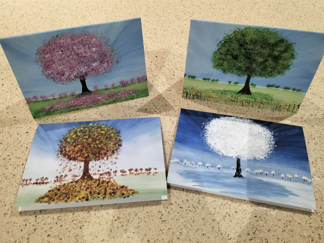 Pack of 4 note cards featuring the four seasons, great for dropping a line to friends
