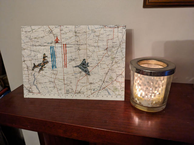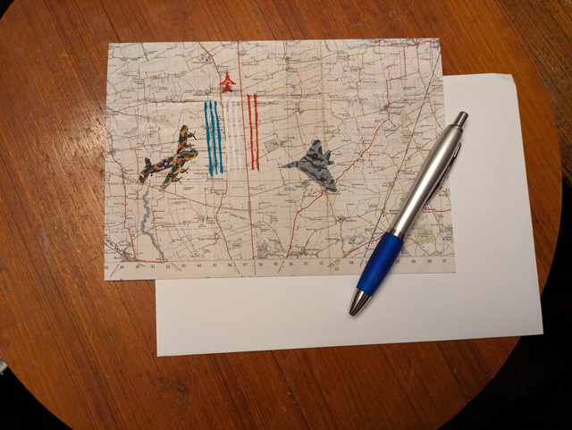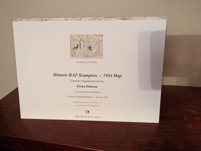 Blank greeting cards featuring a 1954 vintage map with the historic aircraft which make RAF Scampton famous Cards are 6x8 inches and come with an envelope in a cello bag.