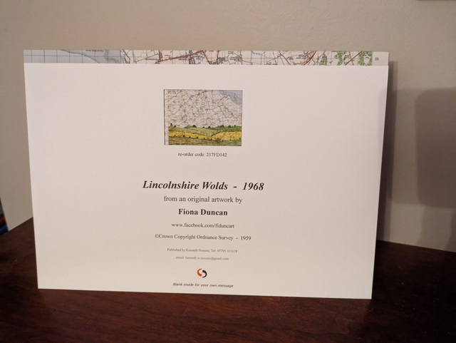 Blank greeting cards featuring a 1968 vintage map with the Lincolnshire Wolds