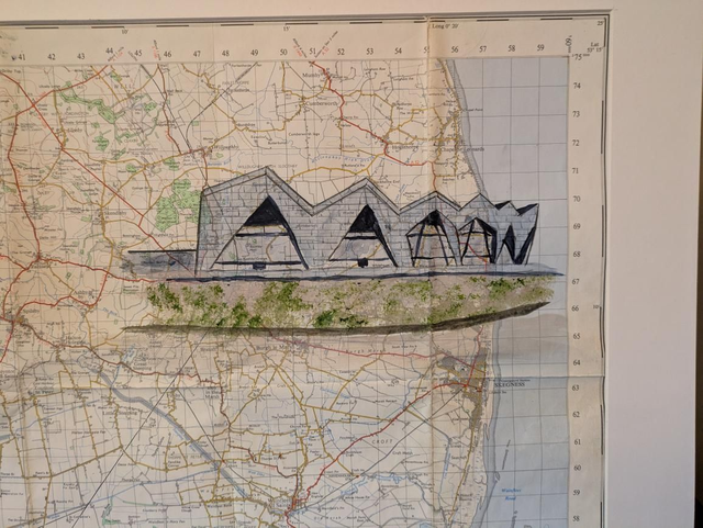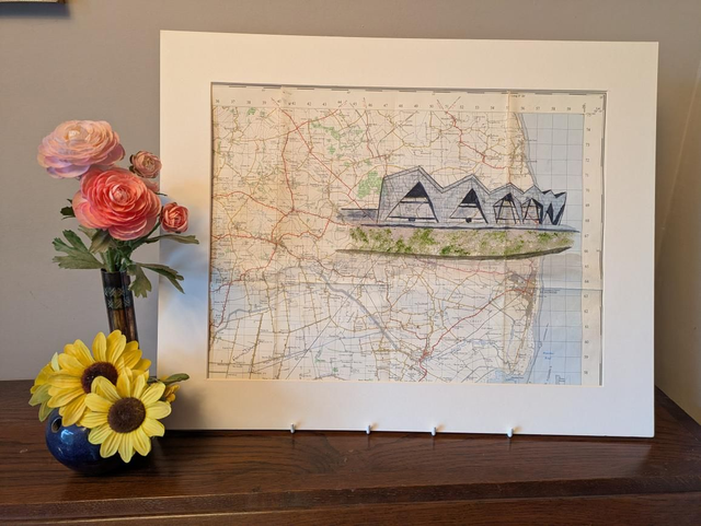 The North Sea Observatory near Chapel St Leonards in Lincolnshire painted on a vintage map from 1962