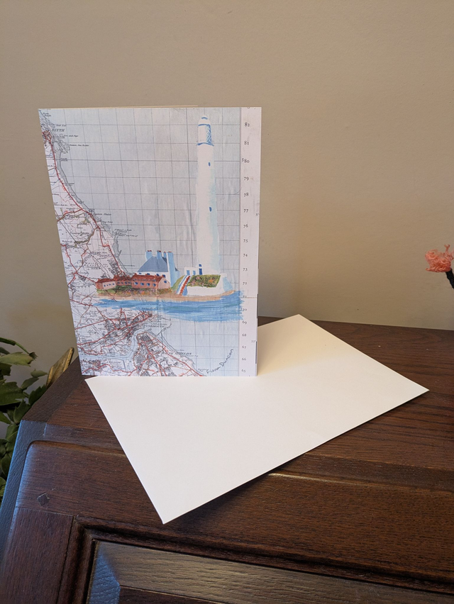 Blank greeting cards featuring a 1947 vintage map with St Mary's Lighthouse, Northumberland