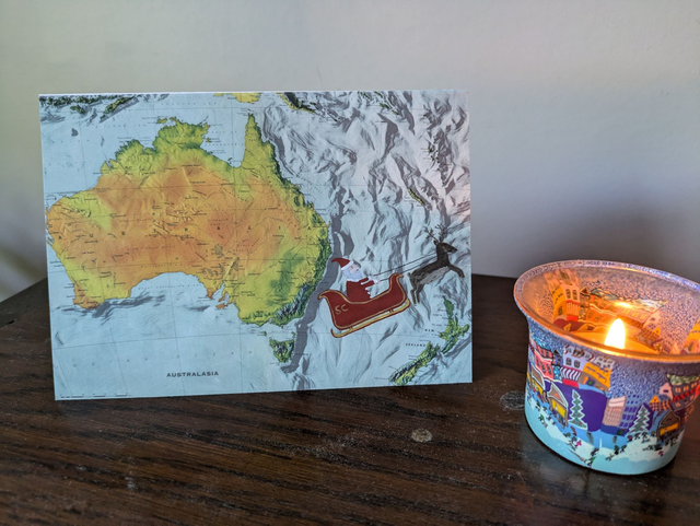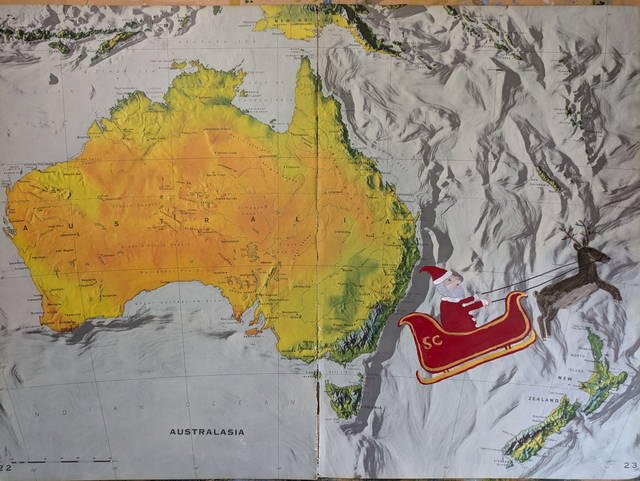 If Father Christmas starts his journey at the North Pole then he ends it in Australia and New Zealand (GMT doesn't count in Santa-land!)