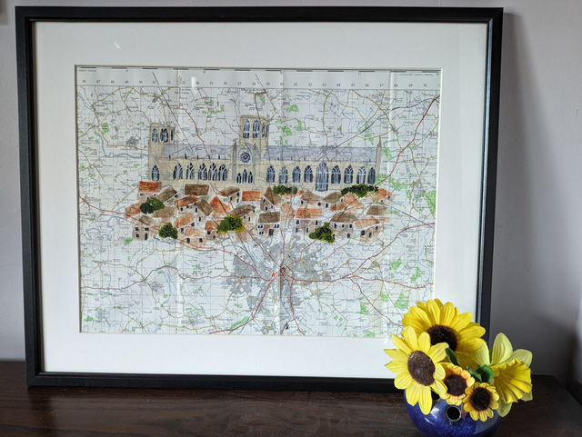 York Minster painted on an original vintage map from 1967 surrounded by the medieval roofs of The Shambles. 16 x 20 inches with mount, this will be sent in a tube so without mount. UK delivery only